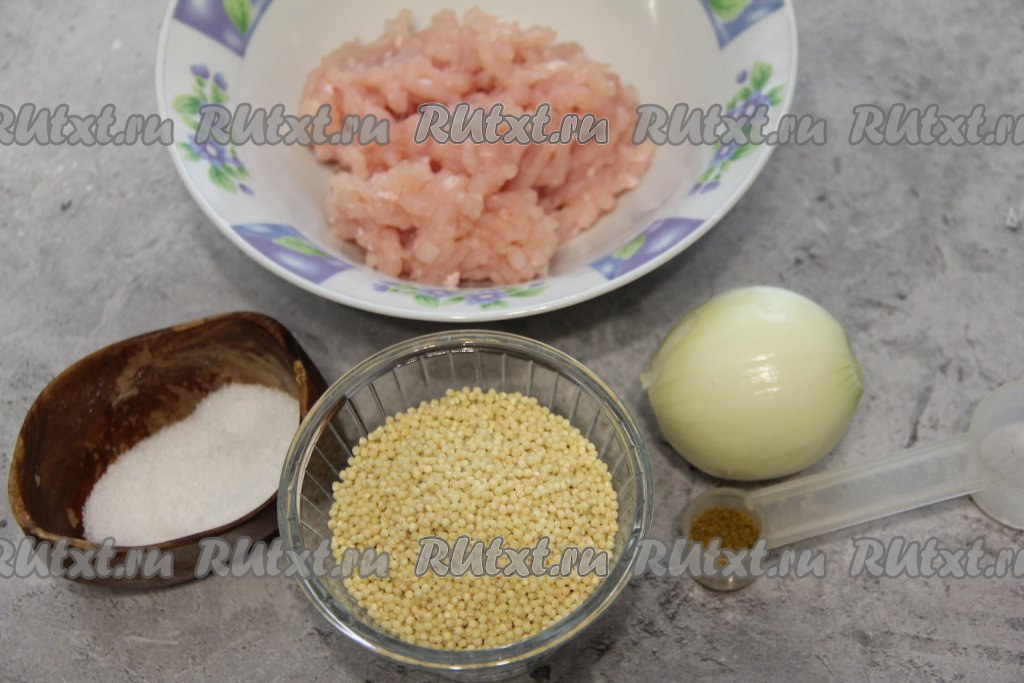 Подготовить продукты. Лук почистить и мелко нарезать. Для этого блюда можно взять любой мясной фарш, у меня - куриный.