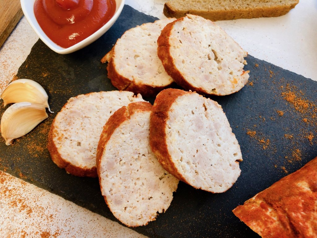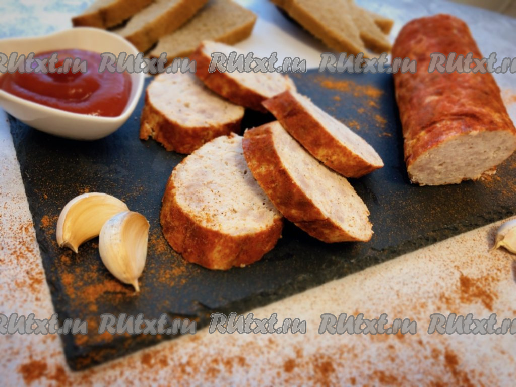 Колбаска получается нежной, ароматной и вкусной. Она станет отличной альтернативой покупной колбасе.