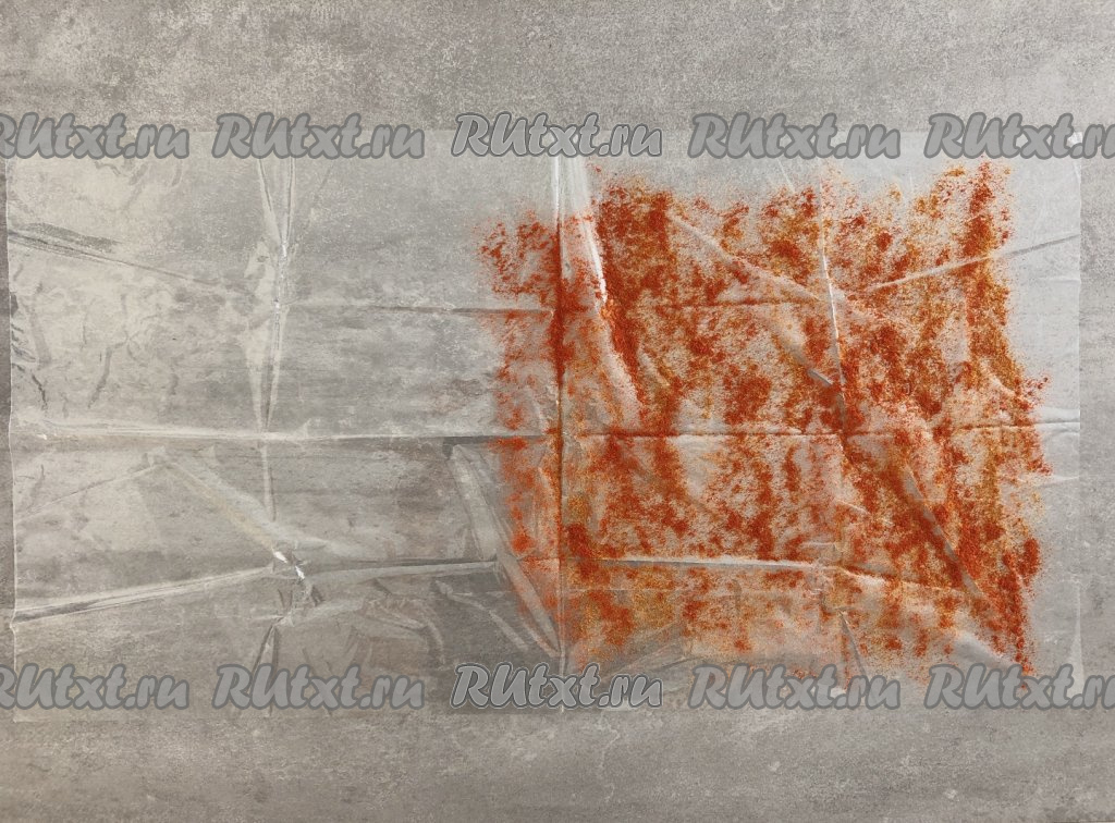 Готовить колбасу будем с использованием рукава для запекания. Отрезаем рукав длиной 70 сантиметров (у меня получился прямоугольник длиной 70 сантиметров и шириной 40 сантиметров). Половину получившегося прямоугольника посыпаем молотой паприкой, немного отступив от краёв.