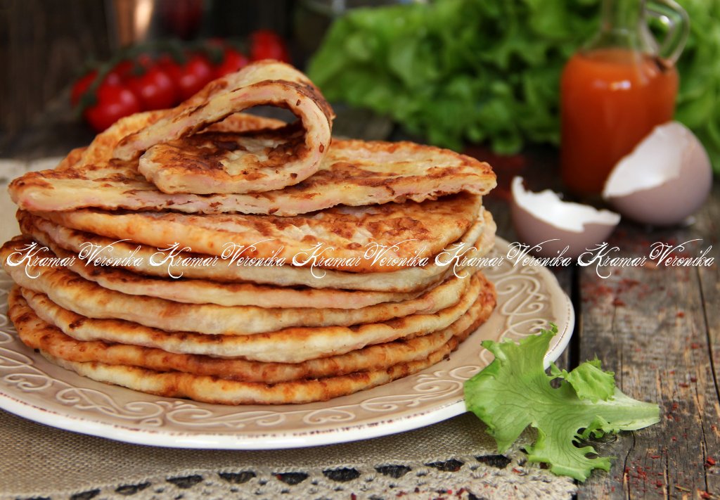 Одну за другой пожарить на сковороде все лепёшки. Вкусные, нежные сырные лепёшки с ветчиной подать к столу тёплыми. Если вдруг они остыли, тогда просто подогрейте их в микроволновке. Благодаря тому, что тесто для этой выпечки замешивается на кефире, лепёшки получаются мягкими и очень аппетитными.