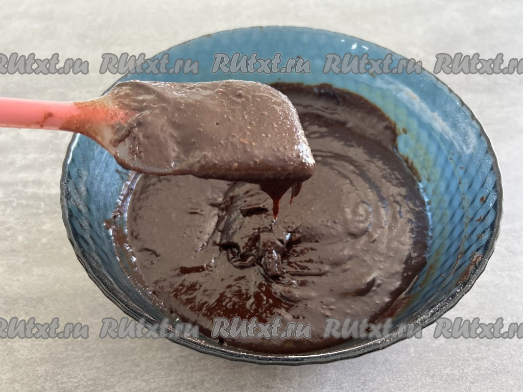 Добавляя муку, учитывайте, что шоколадное тесто для брауни должно получиться однородным, напоминающим по консистенции густую сметану (как на фото).
