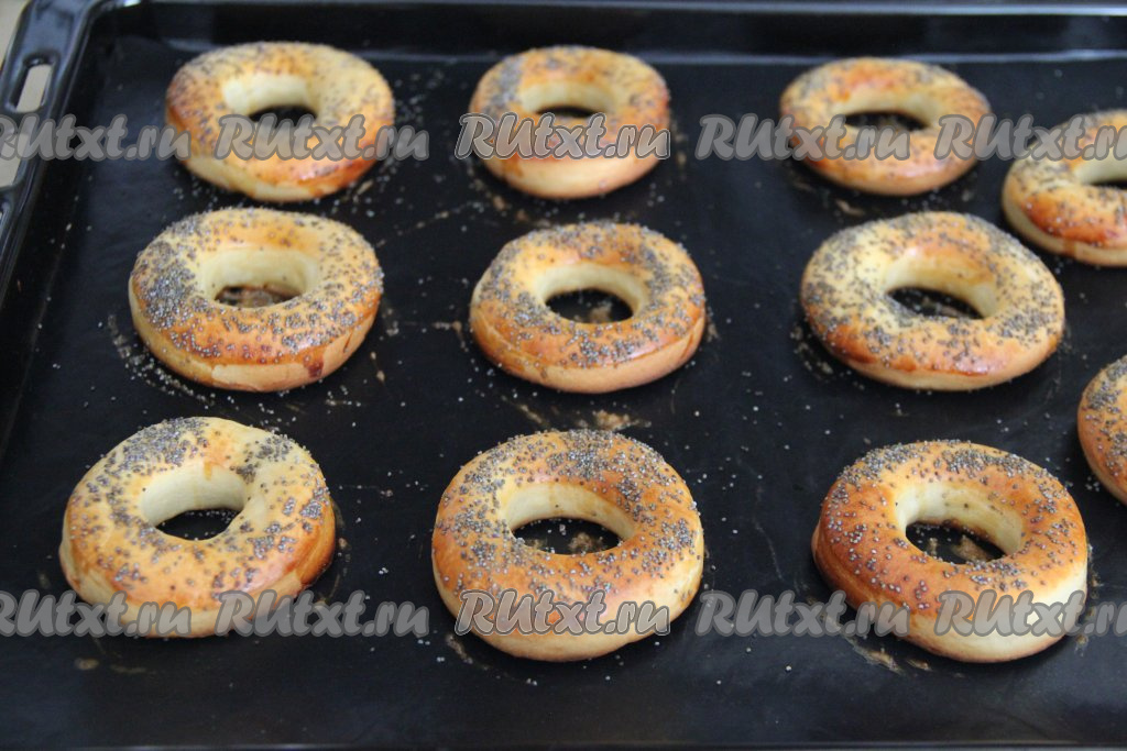 Выпекать бублики минут 20 (до подрумянивания) в духовке, разогретой до 180 градусов.