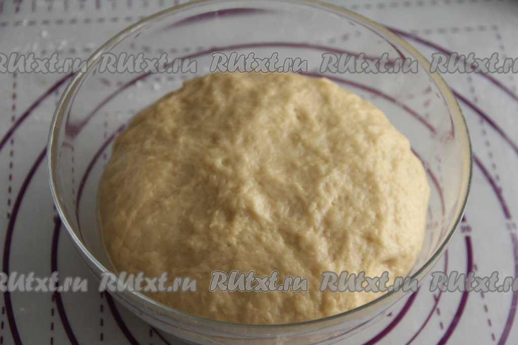 Добавляя понемногу муку, учитывайте, что тесто должно получиться мягким, не липнущим к ладоням. Оставить тесто в миске, прикрыв полотенцем, в тёплом месте на 1 час.