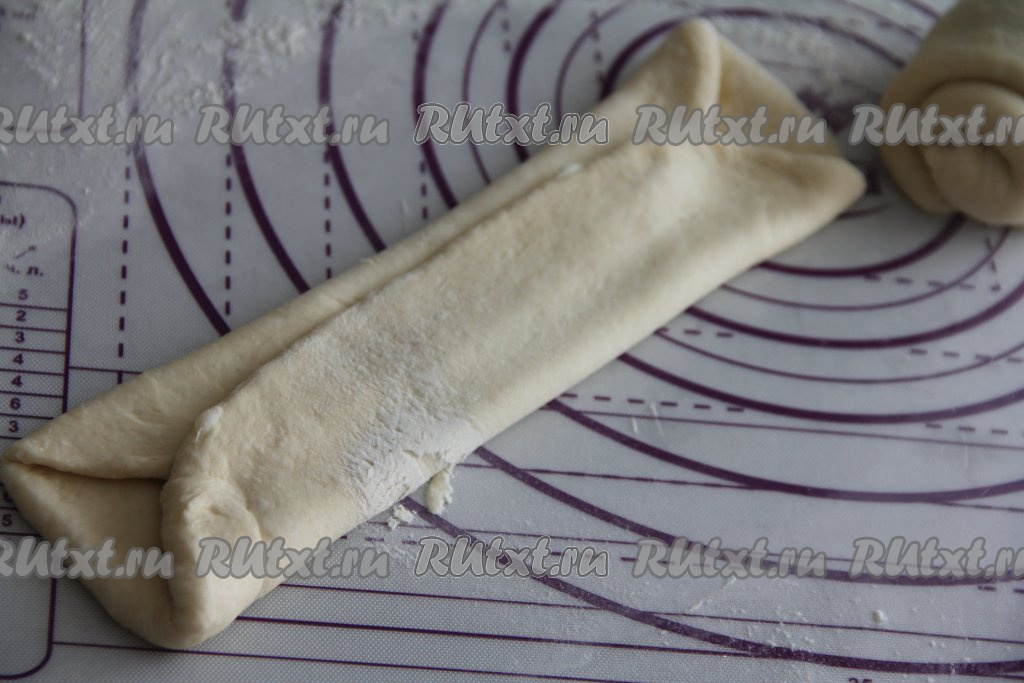 А затем свернуть тесто в рулетик, начиная с узкой стороны.