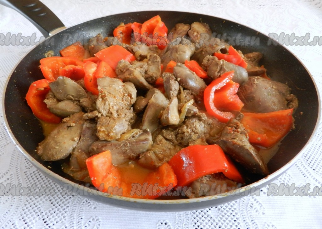 Из куриной печени можно приготовить большое количество блюд. В этот раз предлагаю потушить куриную печень с болгарским перцем на сковороде. Блюдо получается очень вкусным. А для того чтобы оно стало ещё и аппетитным, лучше всего взять красный сладкий, мясистый болгарский перец. Печёнку перед обжариванием советую поместить в молоко или сливки примерно на час, тогда вымоченная печёночка получится очень мягкой и нежной. Ну и главное помнить, что готовится печень совсем недолго, лишнее время жарки сделает её жесткой и невкусной. Приготовьте куриную печень с болгарским перцем по этому рецепту и насладитесь ярким, сочным, вкусным блюдом!