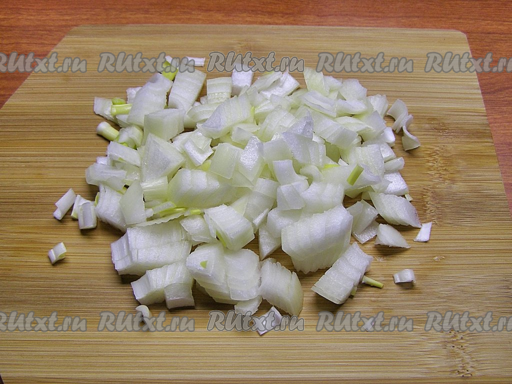 Очищенную луковицу нарезаем на небольшие кубики.