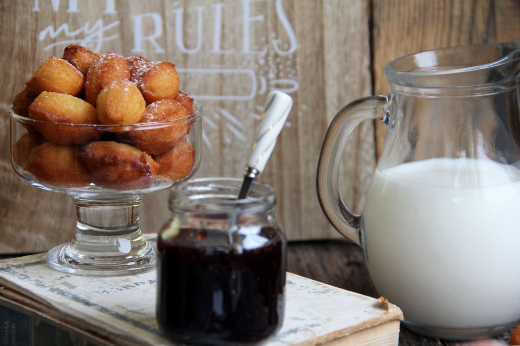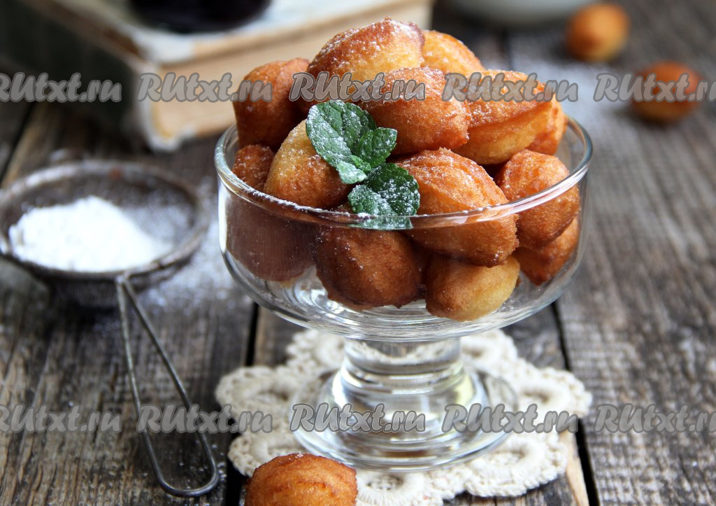 Вкусные, нежные жареные пончики, приготовленные из сгущёнки в масле, подать к столу в тёплом или остывшем виде.