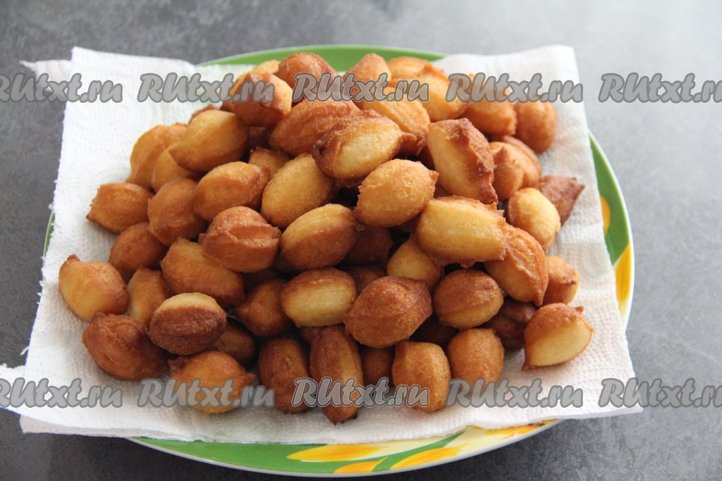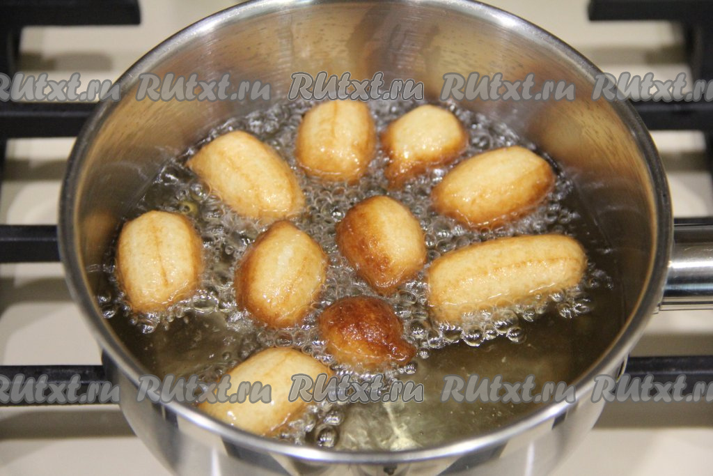 Переложить тесто в кулинарный мешок. Если нет такого мешка, можно выкладывать тесто в разогретое масло обычной чайной ложкой.
