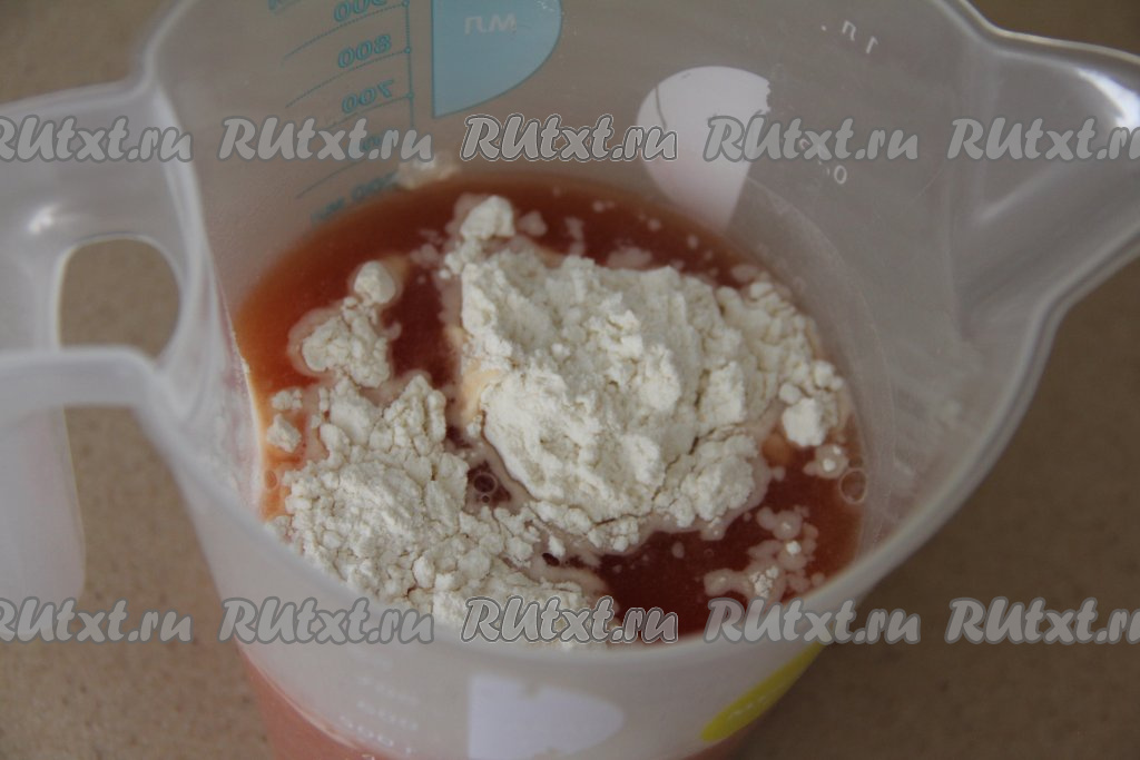 Для приготовления томатного соуса нужно в отдельной ёмкости соединить 500 миллилитров воды, томатную пасту и муку, посолить и перемешать соус до однородности.