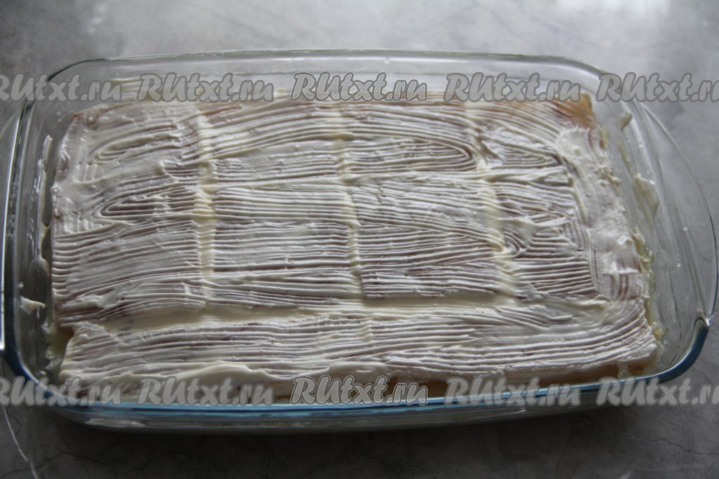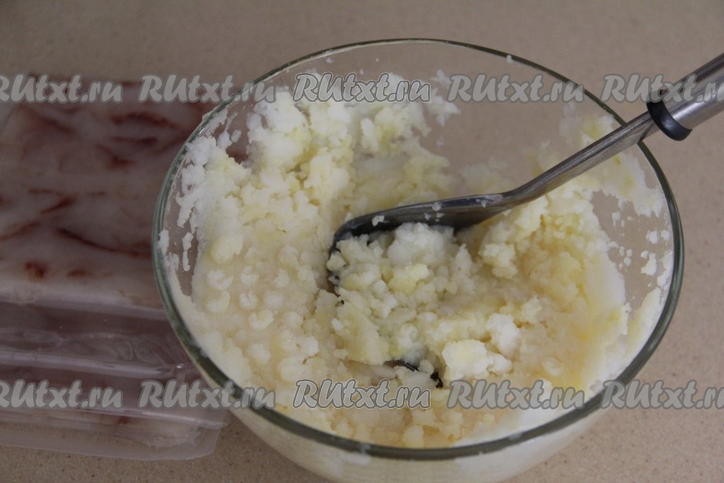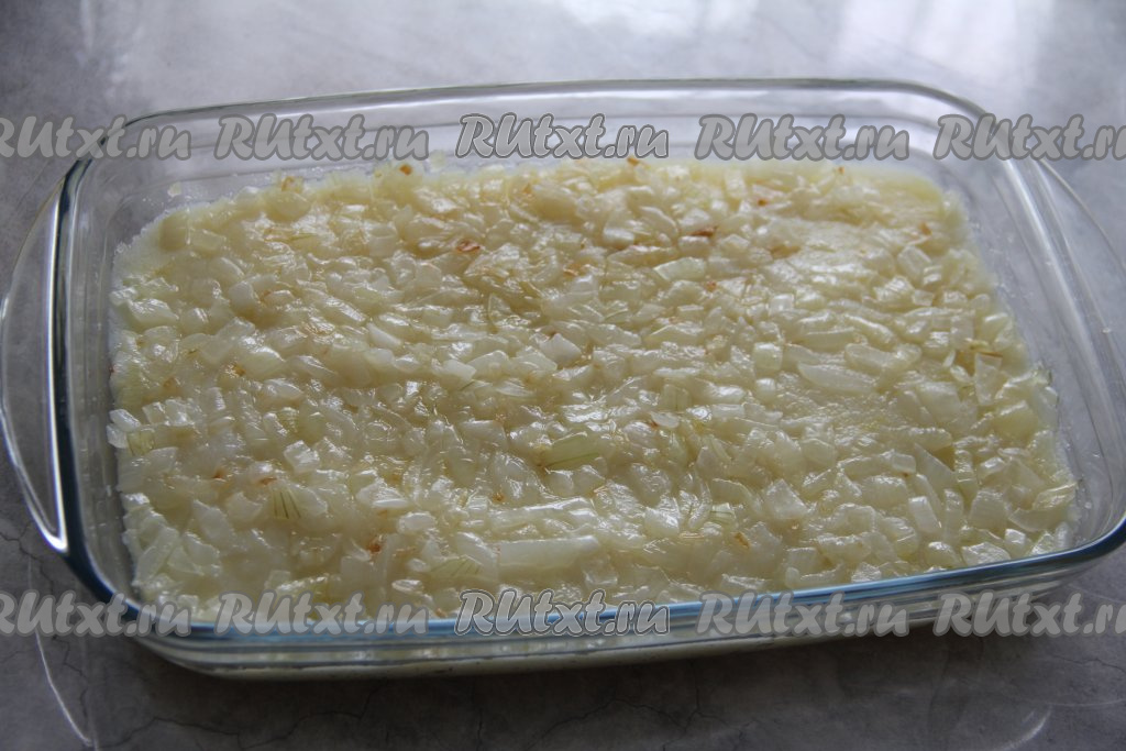 В жаропрочную форму (я взяла форму размером 20 сантиметров на 33 сантиметра) выложить картофельное пюре, разровнять.