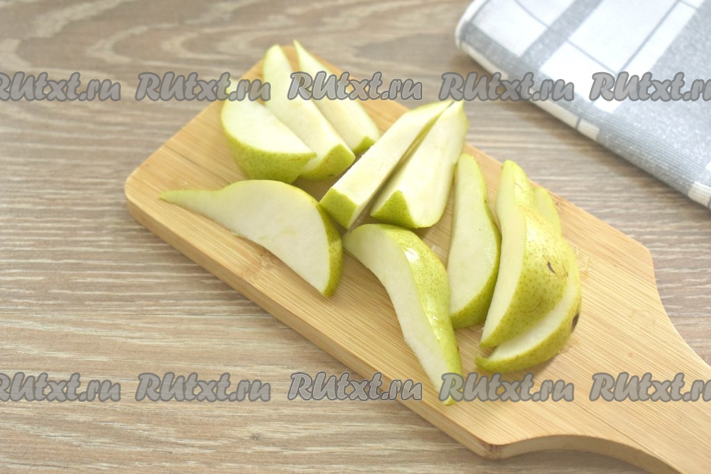 Нарезаем вымытые груши на небольшие ломтики, удаляя семенную коробку.