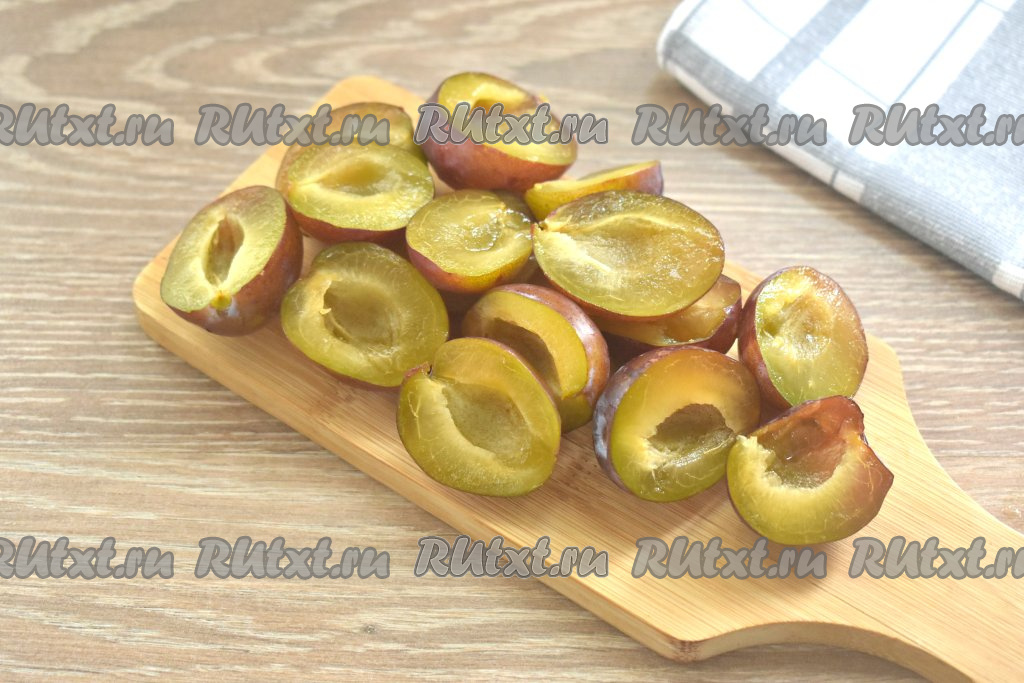 Вымытые сливы разрезаем пополам, затем удаляем из них косточки.