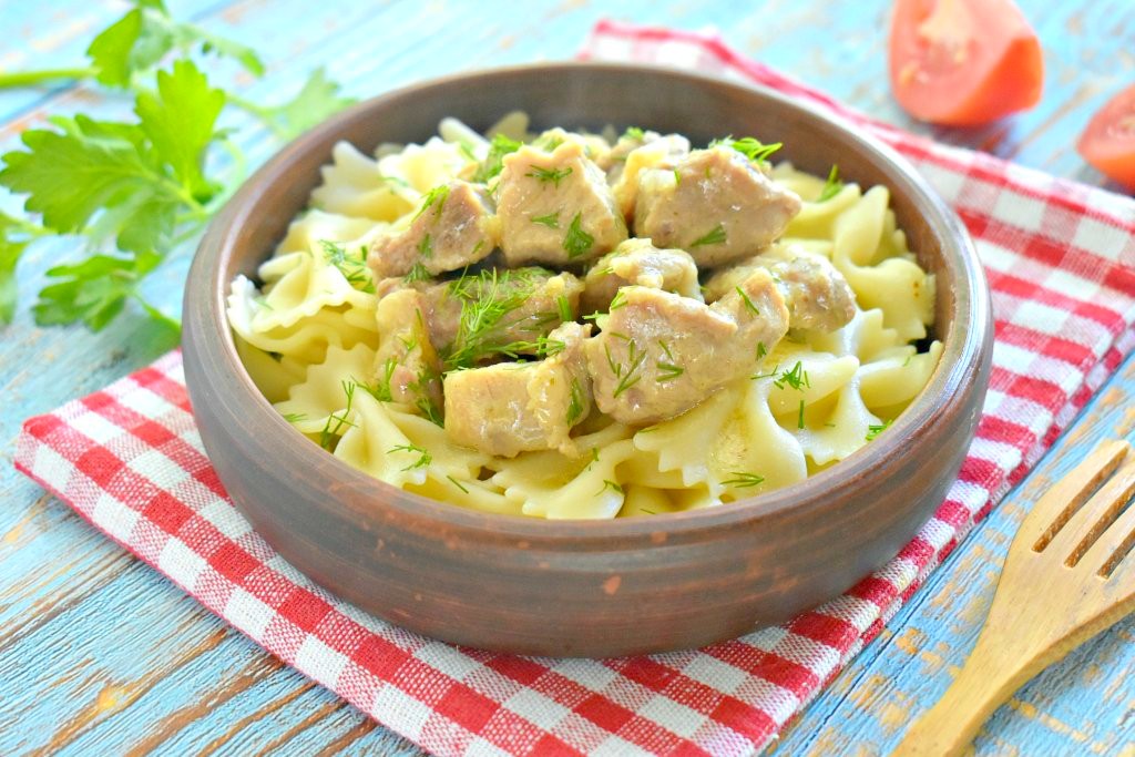 Гуляш из свинины можно подать практически к любому гарниру, поливая сметанным соусом, в котором тушилось мясо. На этот раз я подала с макаронами, получилось очень вкусно, сытно и аппетитно.