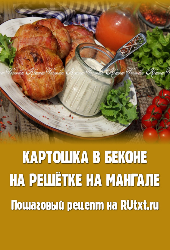 Предлагаю запечь на решётке на мангале картошку в беконе. Картофель получается аппетитным, вкусным, нежным и ароматным. Его можно подать в качестве гарнира к мясу, рыбе или в качестве самостоятельного блюда. Для того чтобы картошечка запеклась на мангале побыстрее, мы её предварительно приготовим в микроволновке, а затем уже обжарим в беконе на углях до подрумянивания. Подавать ароматную, аппетитную картошку, приготовленную по этому рецепту, следует в горячем виде, дополнив салатом из свежих овощей или соусом (я подала со сметанным соусом).