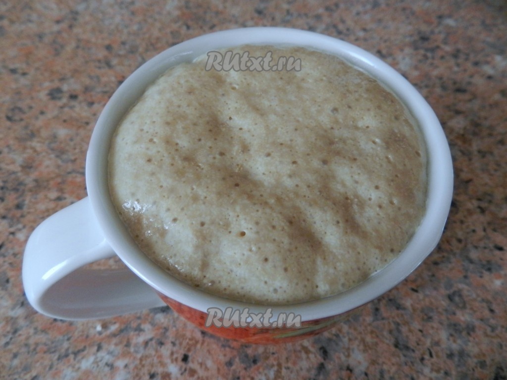 Влить в мучную массу молоко с дрожжами и замесить тесто.