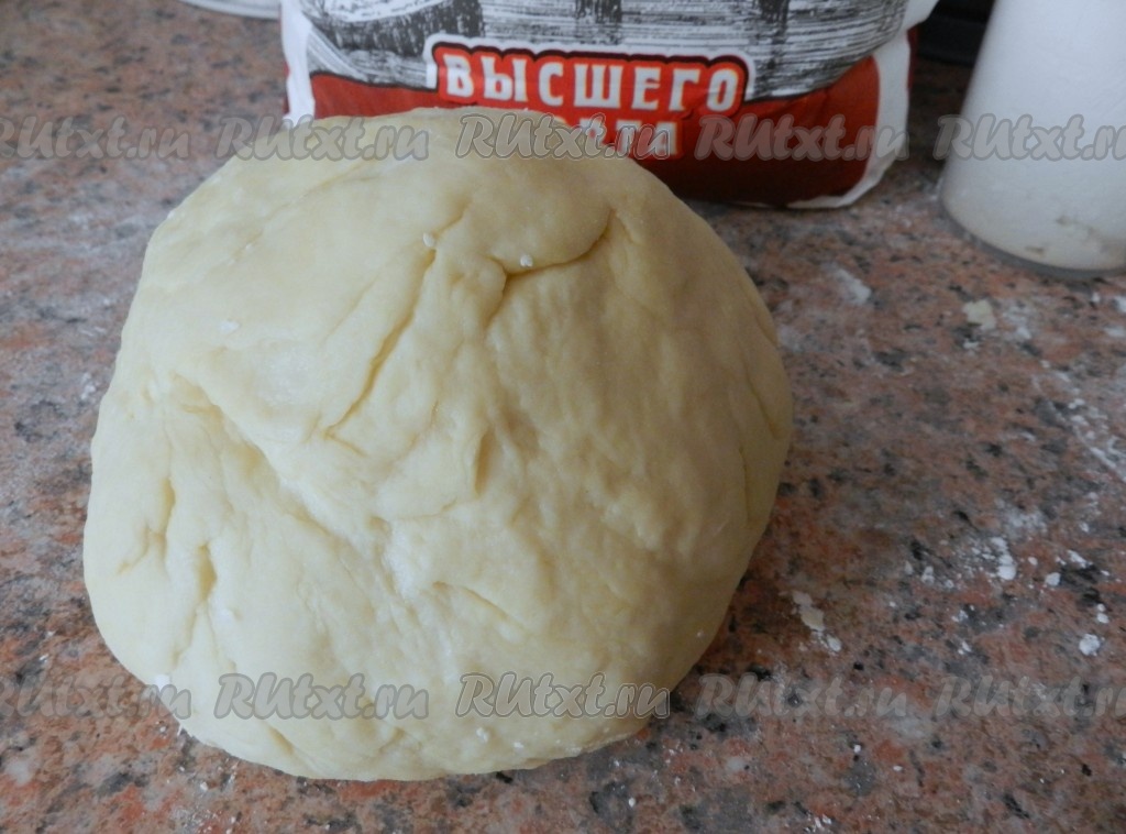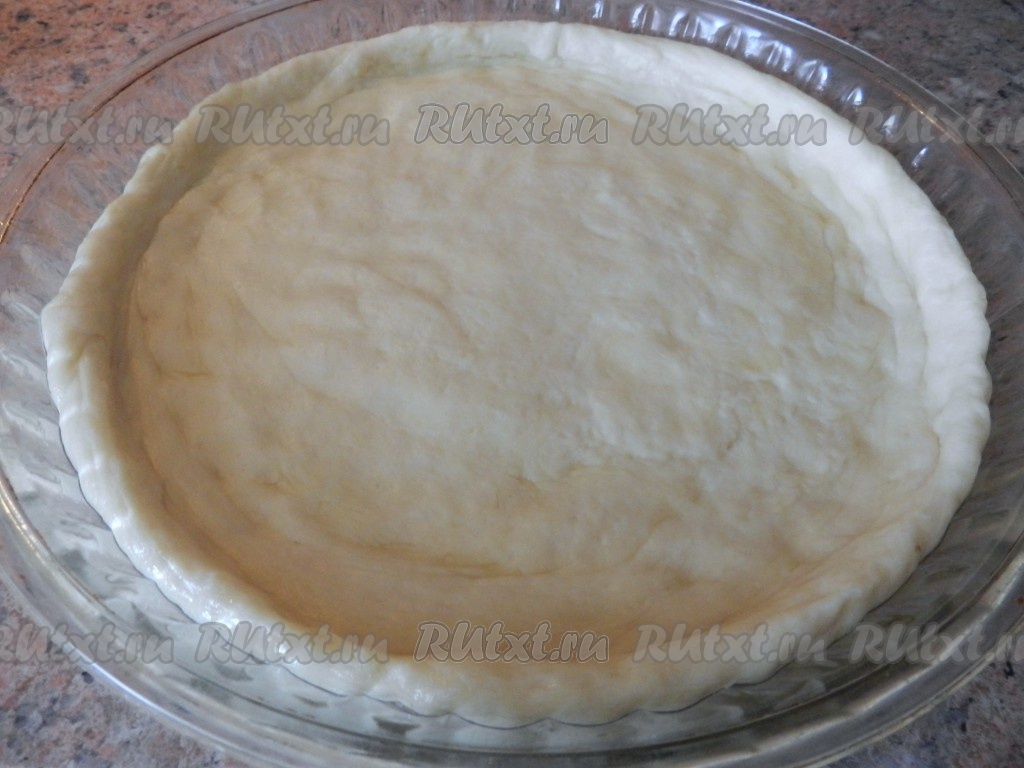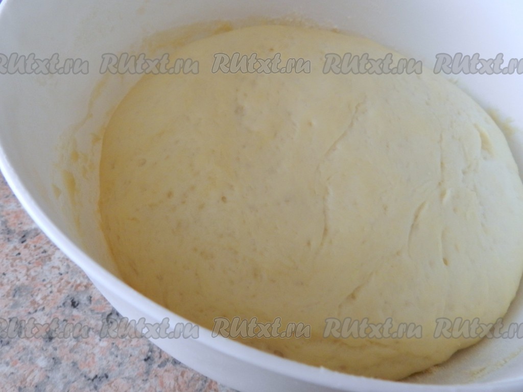 Тесто тщательно вымесить руками на столе. Тесто для пирога должно получиться мягким, эластичным, не прилипать к столу и рукам. Лишнего количества муки добавлять не нужно. Переложить тесто в миску, накрыть чистым полотенцем и оставить в теплом месте без сквозняков на 1-1,5 часа для подхода.