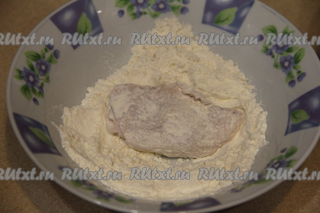 Разрезанные крылышки обвалять в муке со всех сторон.