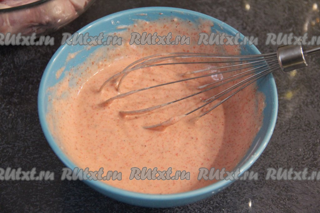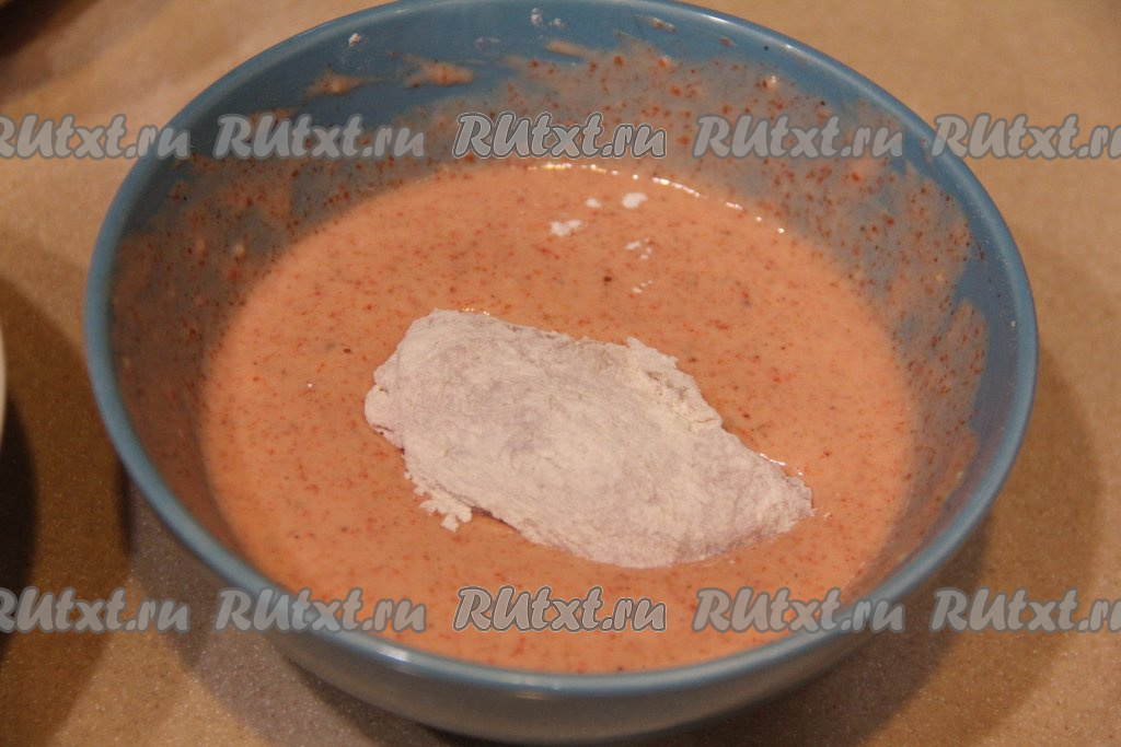 Перемешать кляр, он должен получиться однородным, не очень густым, но обвалакивающим, он будет напоминать густой кефир.