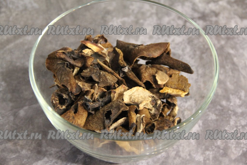 Сушёные грибочки выложить в миску.