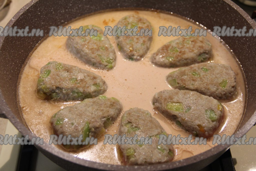 В сковороду влить растительное масло, прогреть его и выложить сформированные ленивые перцы.