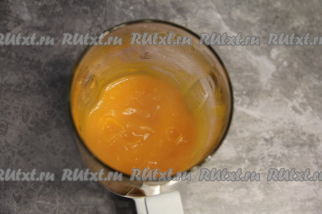Переложить небольшими частями овощи в чашу и пробить погружным блендером до получения однородного тыквенного пюре.