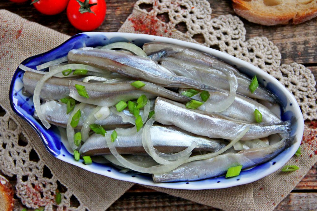 Через сутки в меру солёную, нежную мойву, маринованную в домашних условиях, можно подавать к столу вместе с луком. Эта вкусная рыбка станет отличной холодной закуской или замечательным дополнением к варёной картошке.
