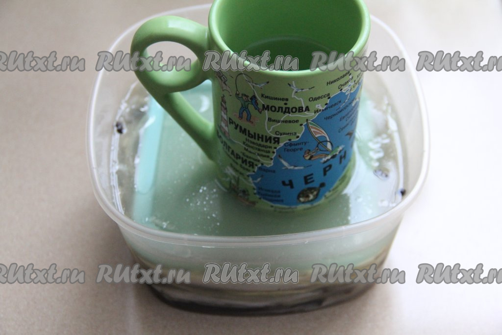 Сделать гнёт, чтобы мойва полностью погрузилась в маринад. Я сделала гнёт, поставив поверх рыбы плоскую крышку от лотка меньшего объёма и обычную кружку, наполненную на половину водой. Поместить лоток с мойвой под гнётом в холодильник на сутки.