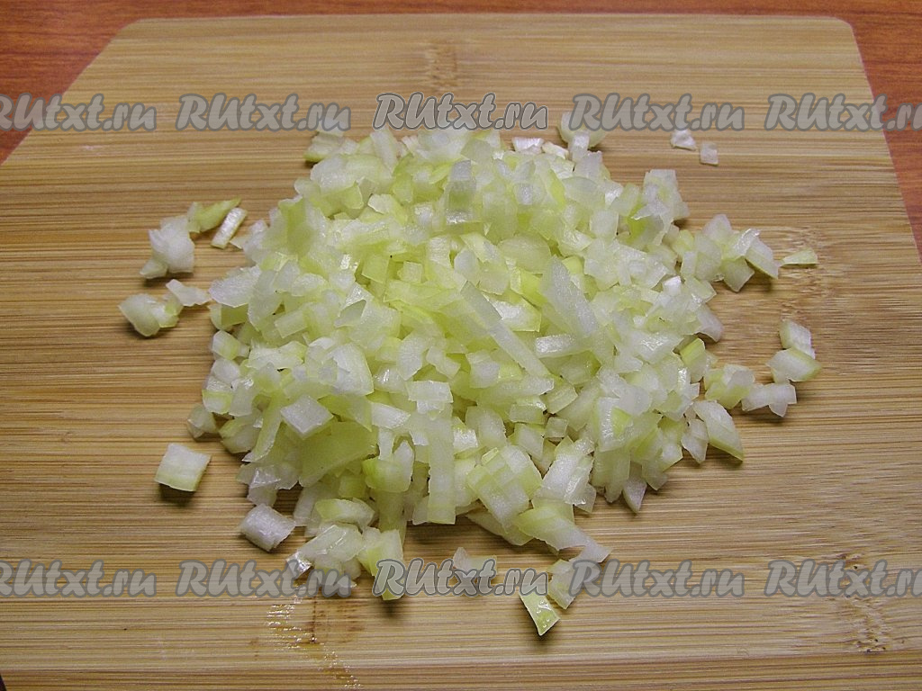 Очищенную луковицу нарезаем на маленькие кубики.