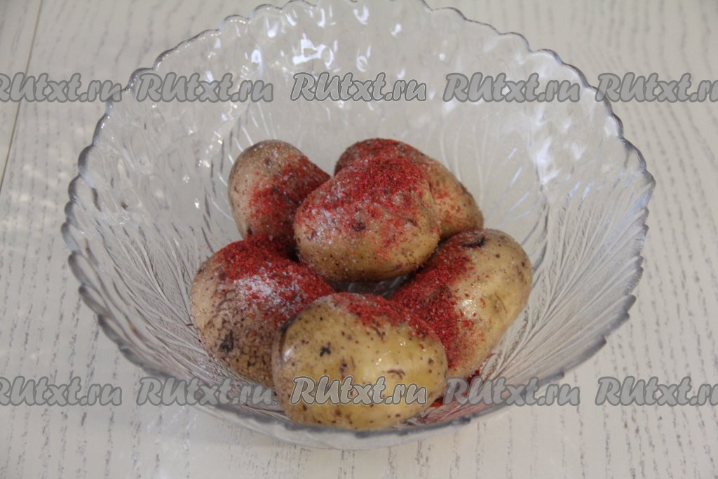 Картошку выложить в миску, добавить растительное масло, соль и специи (у меня - паприка).