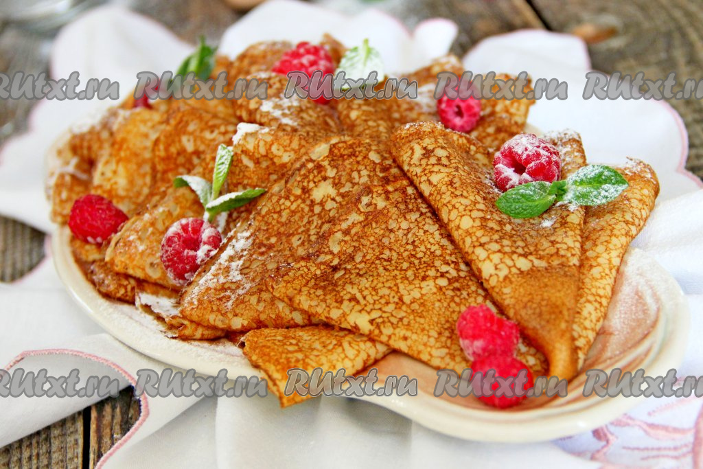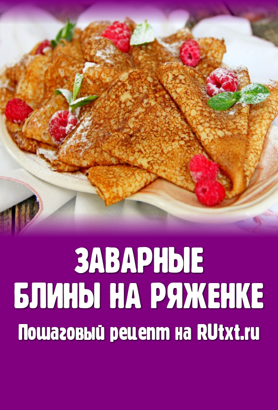 Ажурные, аппетитные, тонкие заварные блины, приготовленные на ряженке с добавлением кипятка, подать к столу.