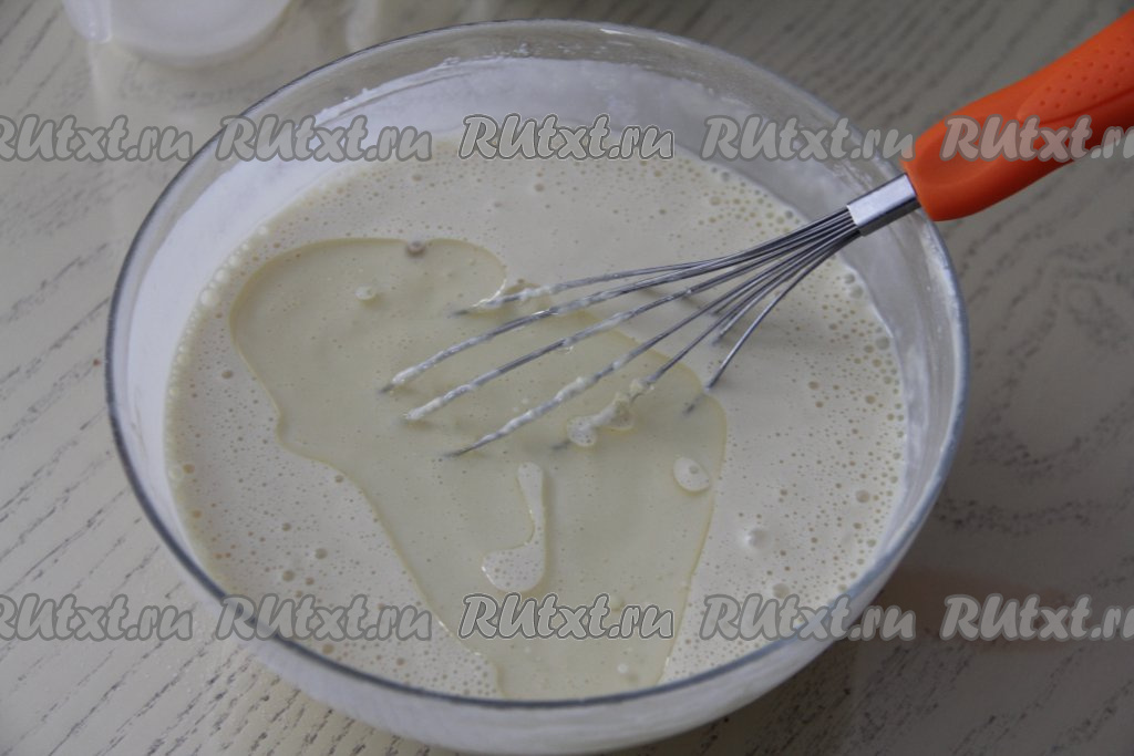 Затем влить растительное масло, очень хорошо перемешать и оставить тесто для блинов "отдыхать" минут на 10.