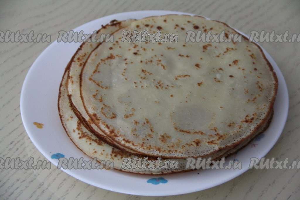 Перед выпечкой каждого блинчика нужно обязательно перемешивать тесто в миске, чтобы оно было однородным. Смазывать сковороду маслом нужно только по мере необходимости. Если качество покрытия сковороды хорошее, то после жарки первого блина в дальнейшем сковороду маслом можно не смазывать.