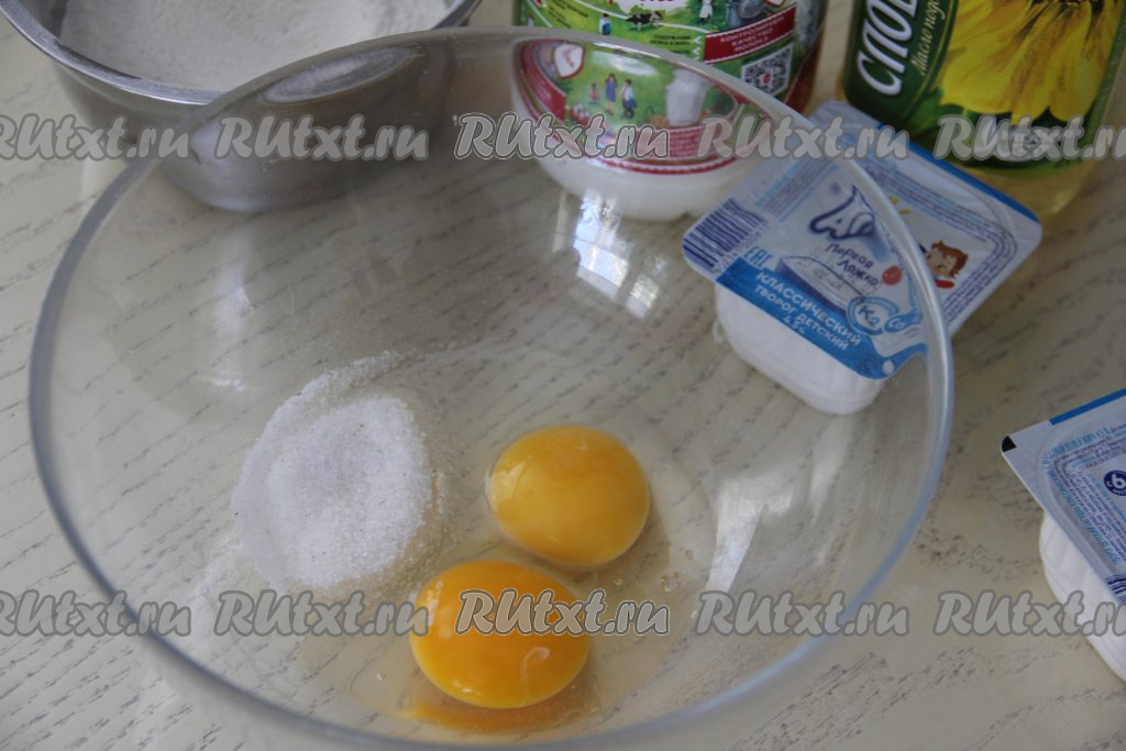 В миску с яичной смесью добавить творожок "Агуша".