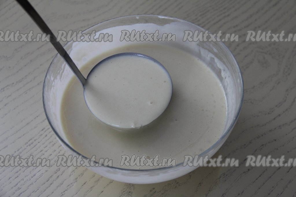 Тесто для блинов, замешанное с добавлением творожка "Агуша" получится в меру густым и однородным.