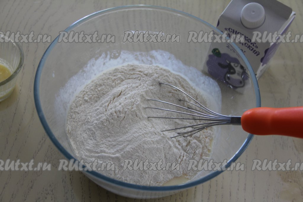Всыпать просеянную муку, соль и ванильный сахар.