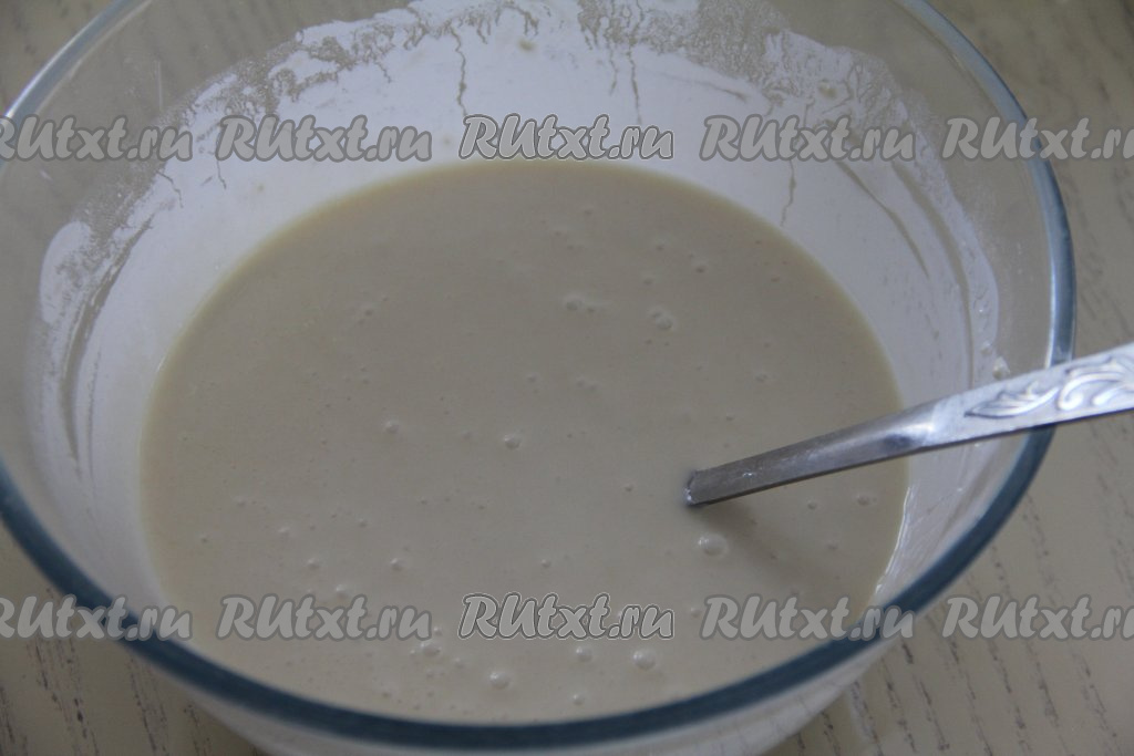 Очень хорошо перемешать тесто, оно получится густым и однородным. Влить оставшиеся 250 миллилитров "Снежка", перемешать.