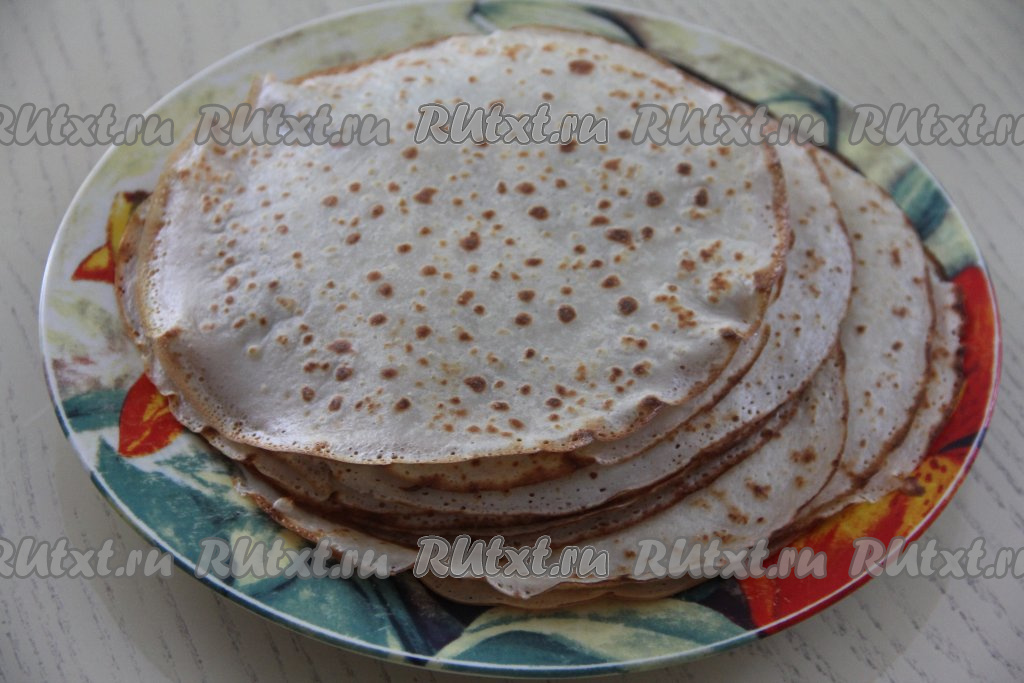 Периодически перемешивая тесто, постепенно пожарить все блинчики, складывая их аппетитной горочкой на тарелку. Я жарила на сковороде диаметром 20 сантиметров, у меня получилось 17 блинов.