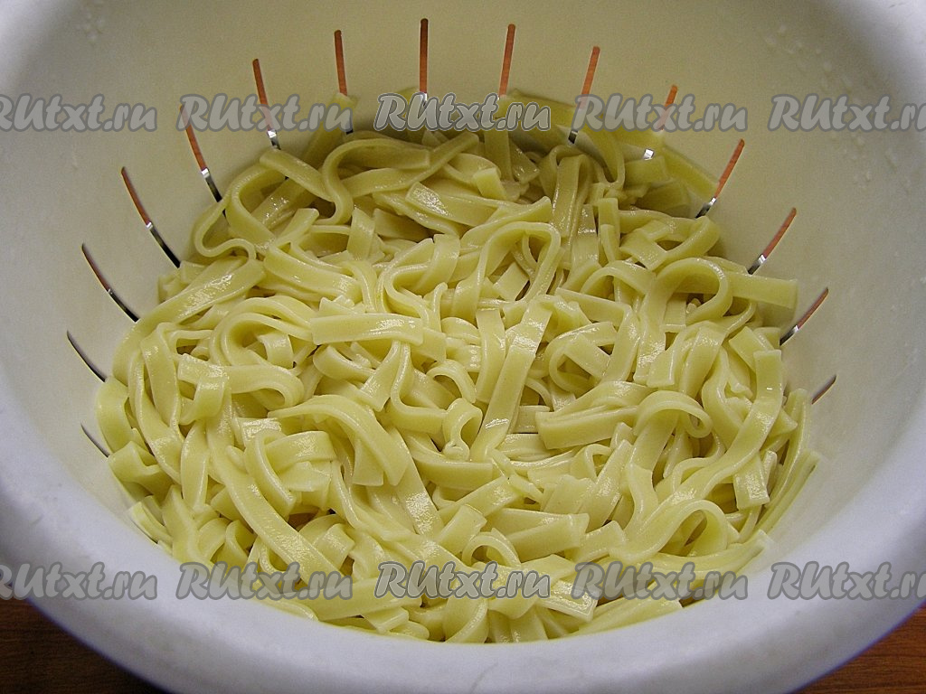 Когда лапша сварится, перекладываем её на дуршлаг и оставляем, чтобы вода стекла.
