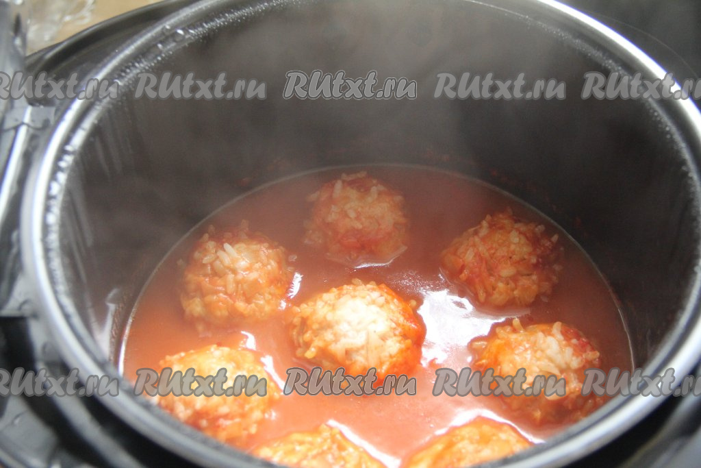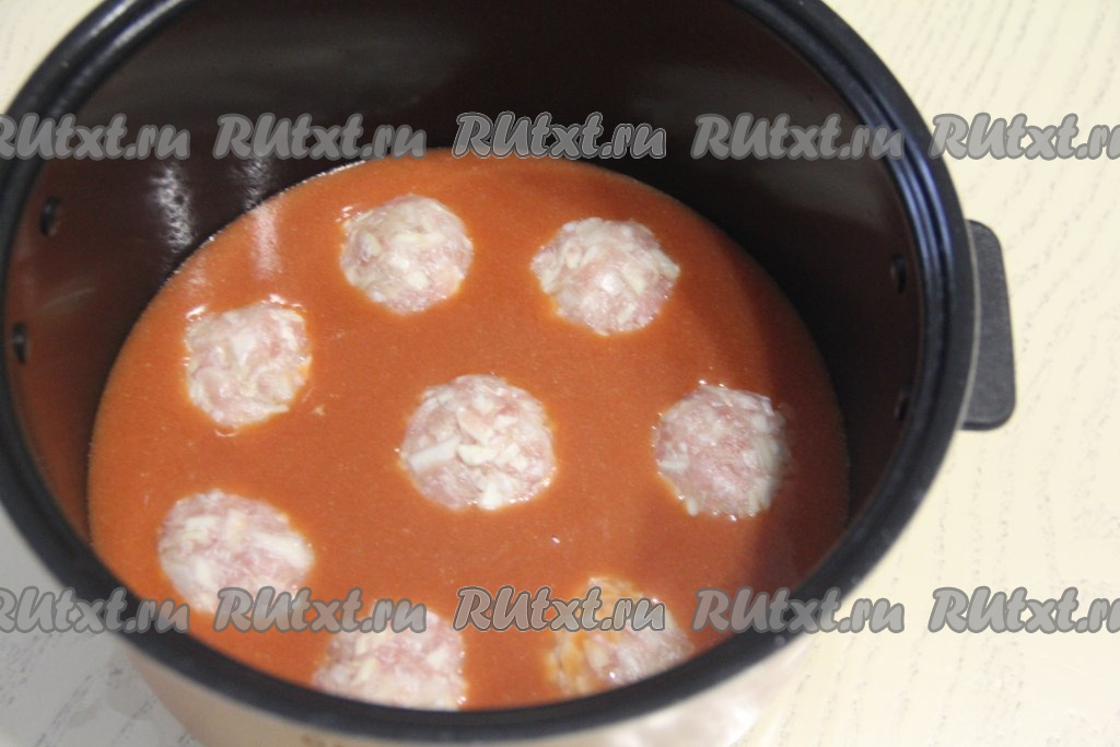 Влить получившийся томатный соус в чашу мультиварки с ленивыми голубцами.