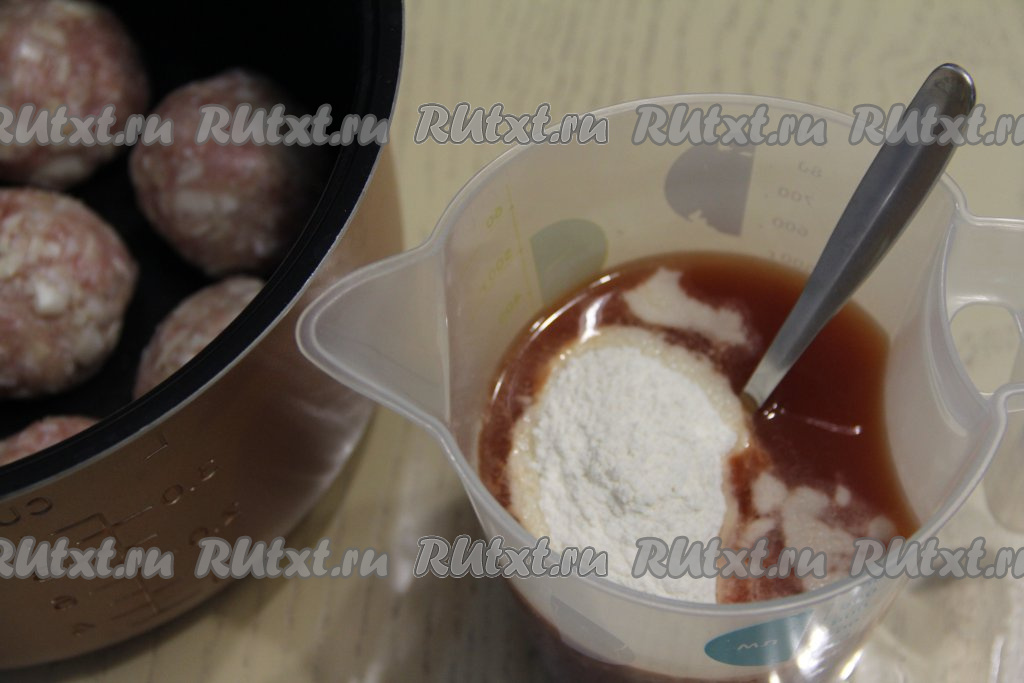 Для получения томатного соуса в отдельной ёмкости соединить воду, томатную пасту, муку, добавить любые специи по вкусу и соль, перемешать венчиком до однородности.