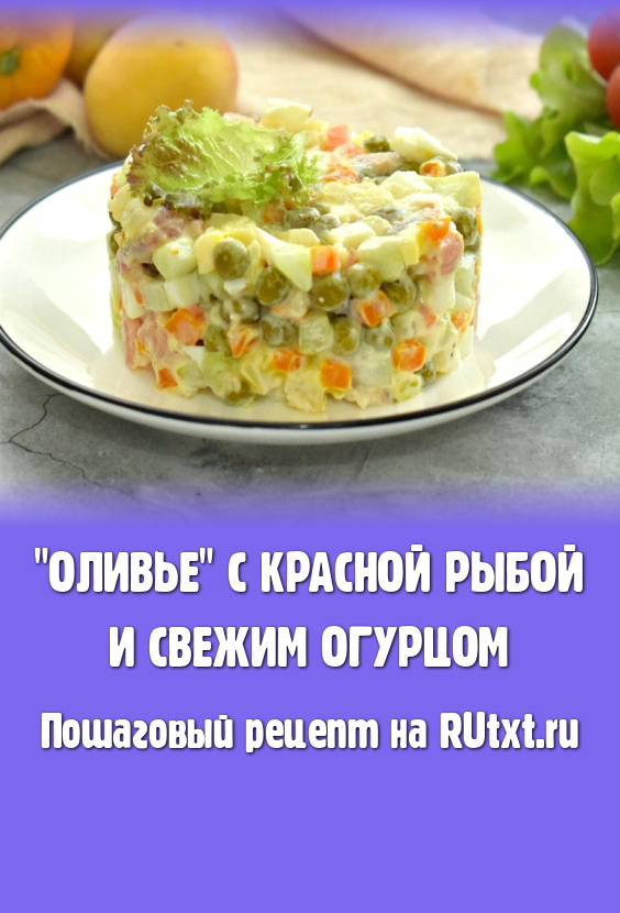"Оливье" - один из самых популярных салатов. Готовят его по-разному, всех вариантов не счесть. В этот раз предлагаю приготовить сочный, вкусный, аппетитный салат "Оливье" с красной рыбой и свежим огурцом. Рыбку для этого блюда лучше брать слабосолёную (у меня - слабосолёная горбуша). Уверена, "Оливье", приготовленный по этому рецепту, понравится и вам, и вашим близким!