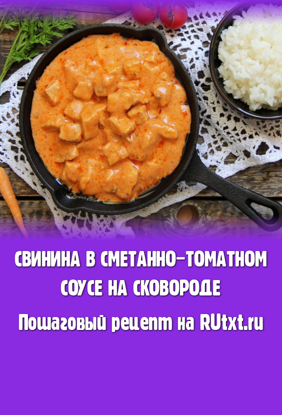 Предлагаю потушить на сковороде мякоть свинины в соусе из сметаны и томатной пасты. Мясо, томлёное в сметанно-томатном соусе, получается очень вкусным, нежным, пикантным. Такую свинину можно подать с гарниром из риса, гречки, макарон или картошки. Это простое блюдо идеально подойдёт для семейного обеда или ужина.