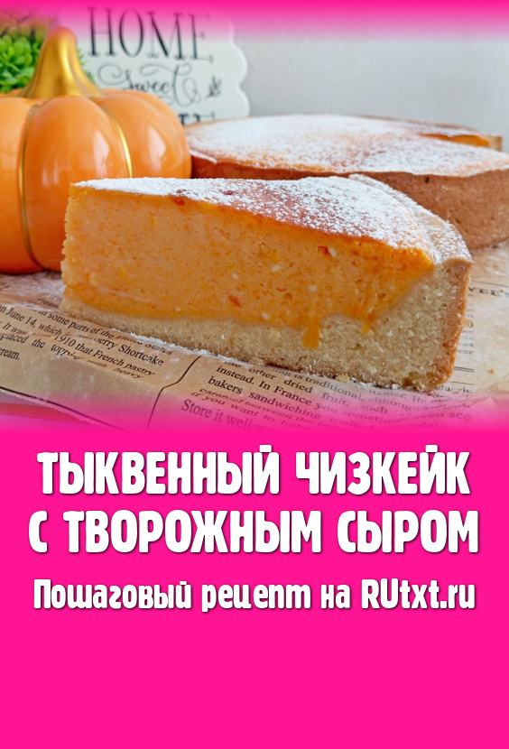 Хочу поделиться рецептом приготовления в духовке восхитительного тыквенного чизкейка. Основу этой выпечки составляет песочное тесто, а начинка делается из тыквы и творожного сыра. Тыквенный чизкейк с творожным сыром получается нежным, с приятной кремовой текстурой, он просто тает во рту. Такой десерт будет как нельзя кстати к осеннему чаепитию!