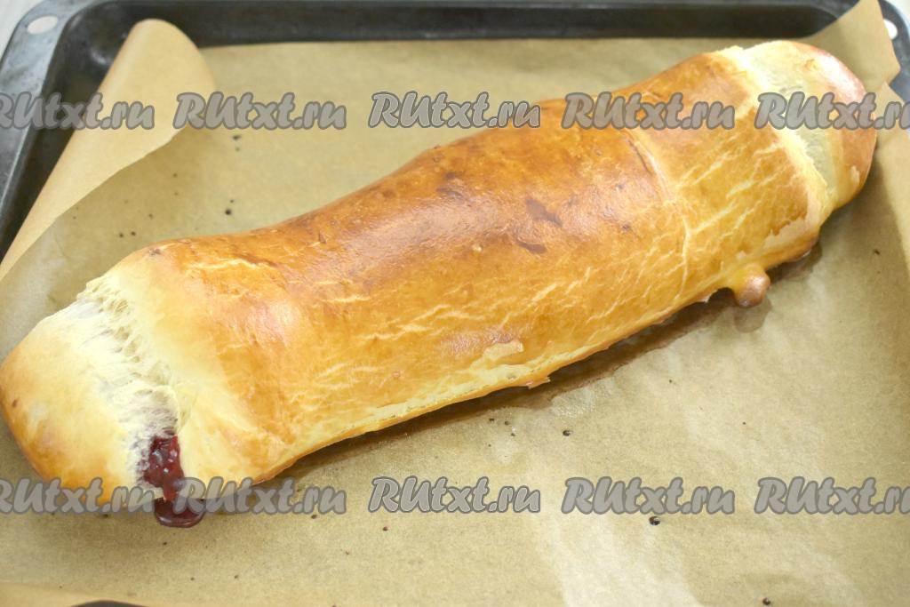 Отправляем противень в духовку, разогретую до 200 градусов, выпекаем штрудель с вишней минут 20 (до подрумянивания слоёного дрожжевого теста).