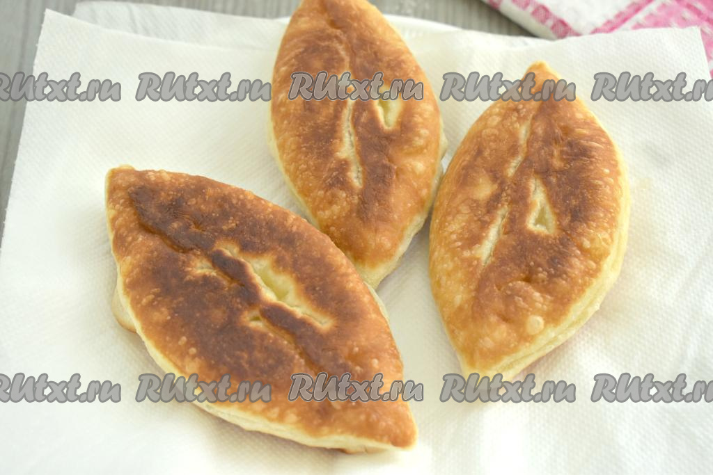 Готовые пирожки со сковороды сразу выкладываем на бумажные полотенца, чтобы удалить излишки масла.