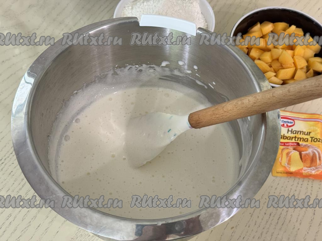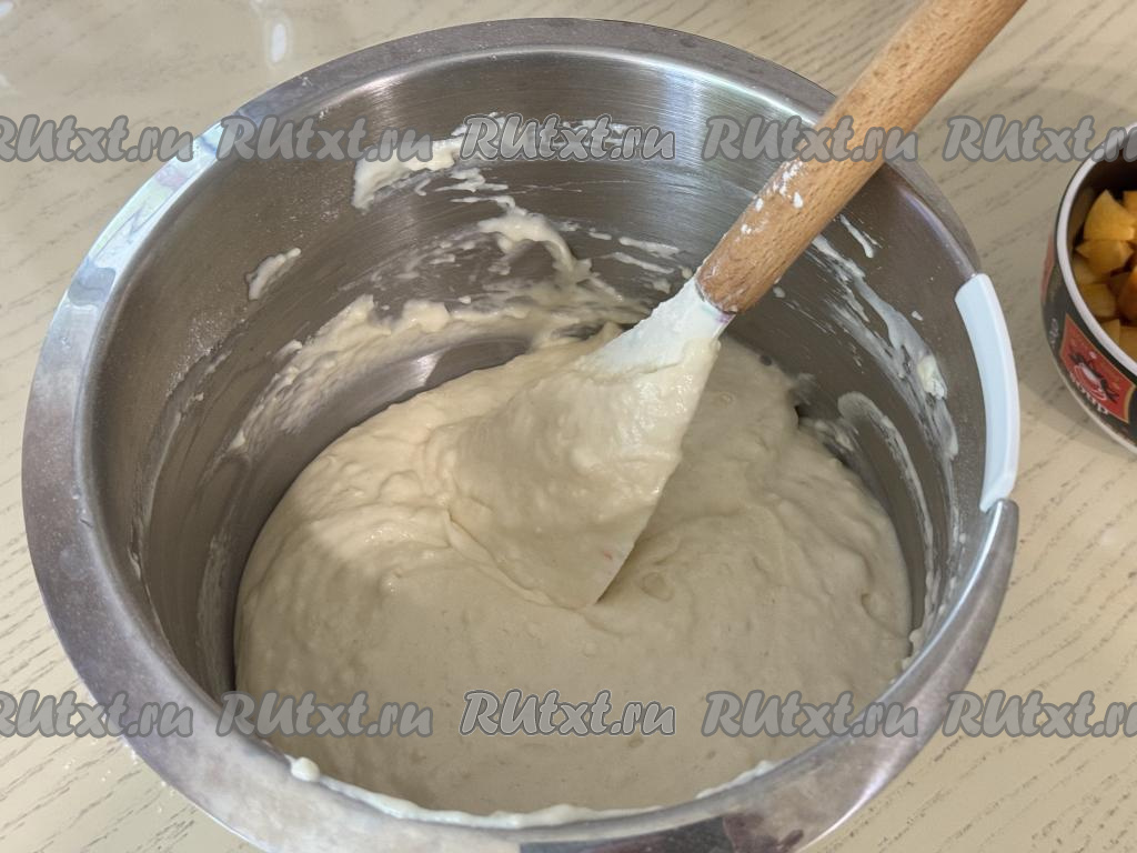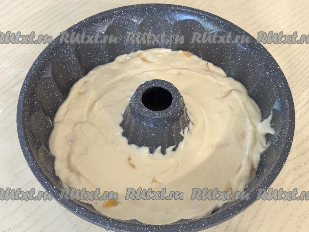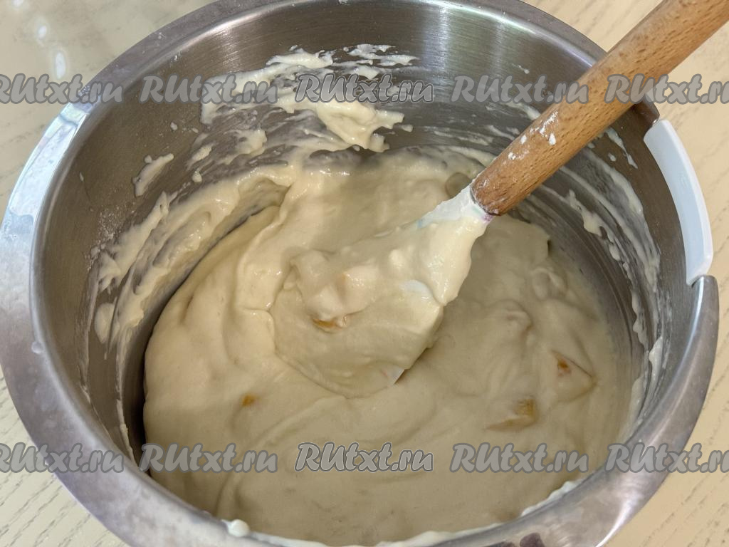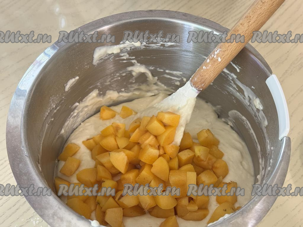 Аккуратно вмешать абрикосы в тесто, равномерно распределяя фрукты по всему тесту.