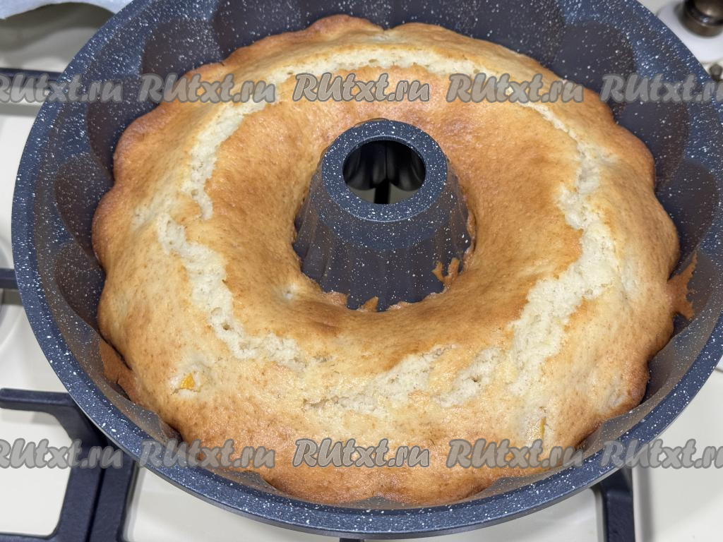 После остывания выложить кекс на плоскую тарелку, можно слегка присыпать сахарной пудрой.