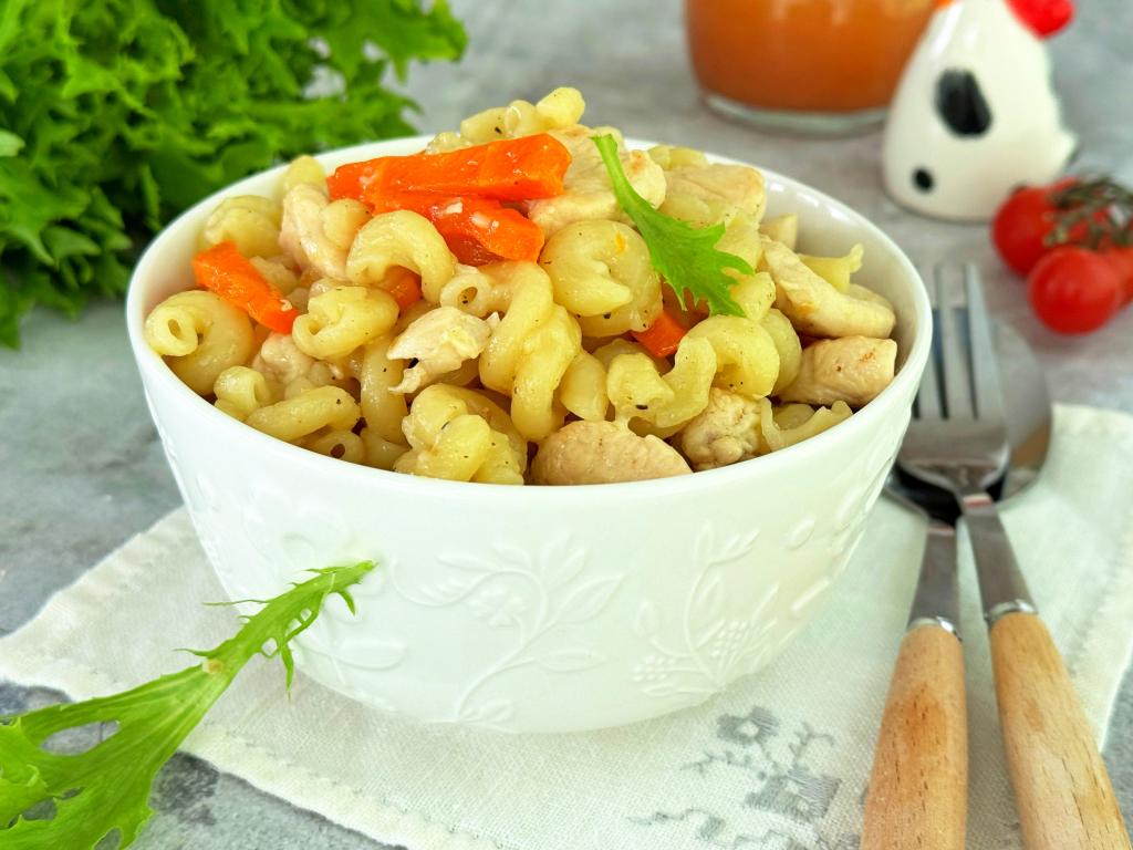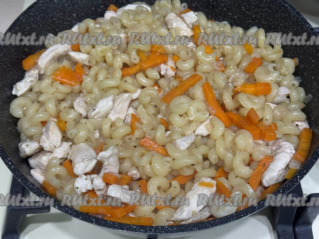 Это блюдо покорило меня своей простотой. На сковороде одновременно готовятся макароны и мясо курицы, а в результате получается вкусный, сытный полноценный ужин для всей семьи. И, что очень удобно, при использовании минимума посуды. Это блюдо часто называют пловом из макарон за сходство рецептуры с обычным пловом. Но, какое название бы вы не дали, результат вас точно не разочарует! Главное - использовать качественные макароны из твёрдых сортов пшеницы, чтобы они не теряли форму в процессе приготовления.