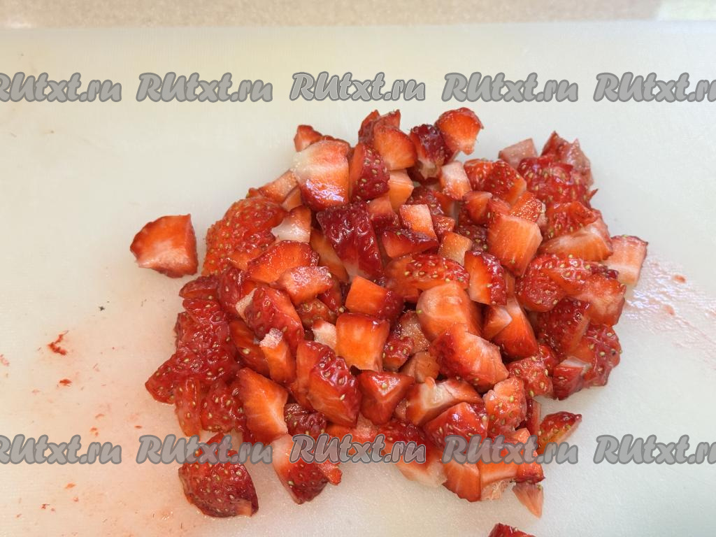 Подготовленную клубнику нарезать на мелкие кусочки.