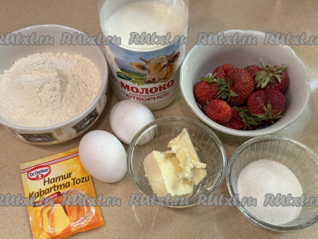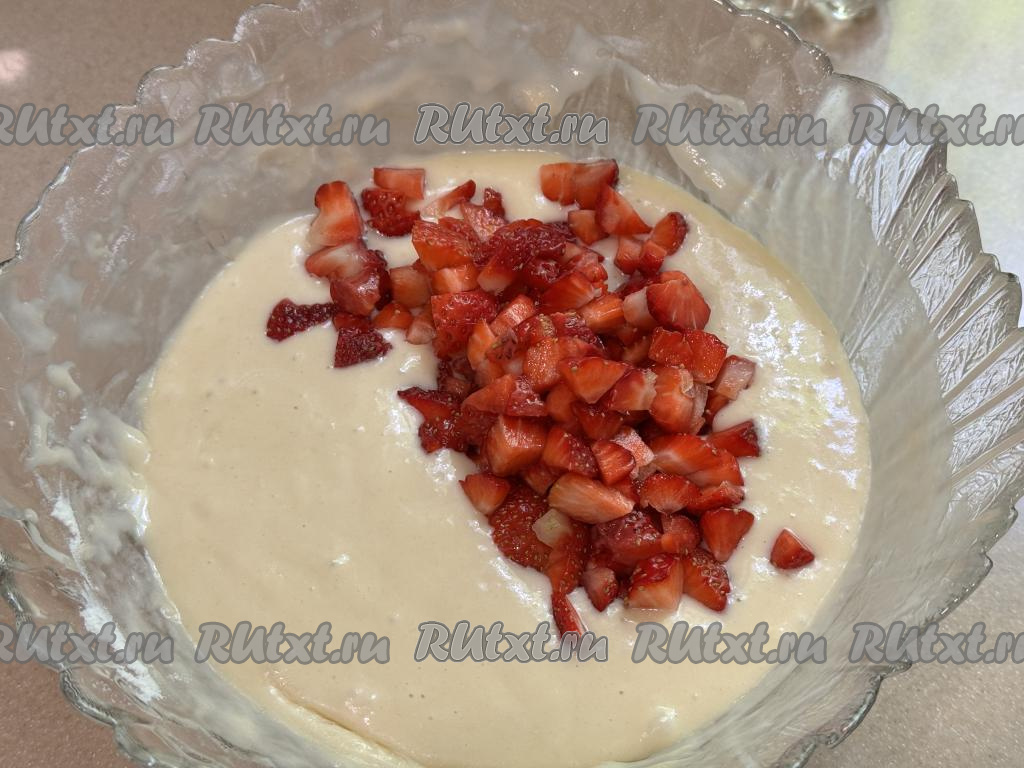 Добавить клубнику в миску с тестом.